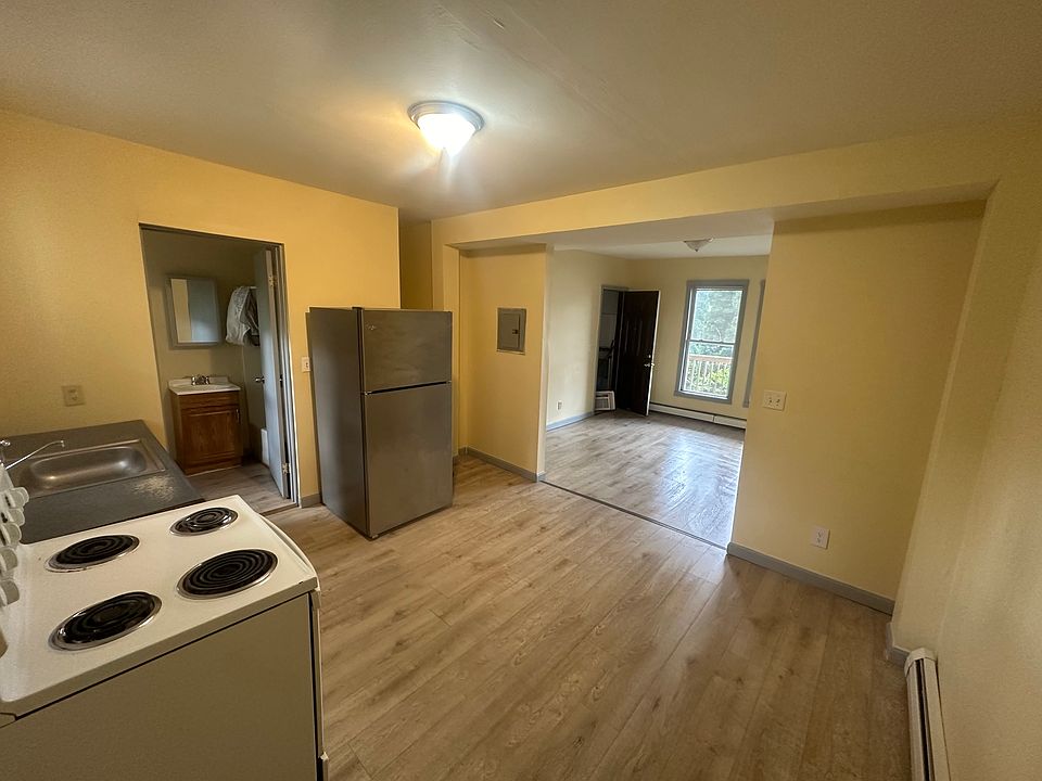 Heated 2 room Studio/Efficiency Apartment. Total of 2 rooms plus full bathroom. Porch access. Unsigned off street parking, also plenty of street parking. !st floor. Includes he at and Hot water. Call to setup appointment for showing. Renter is responsible for electric bill. Landlord pays for heat and hot water.