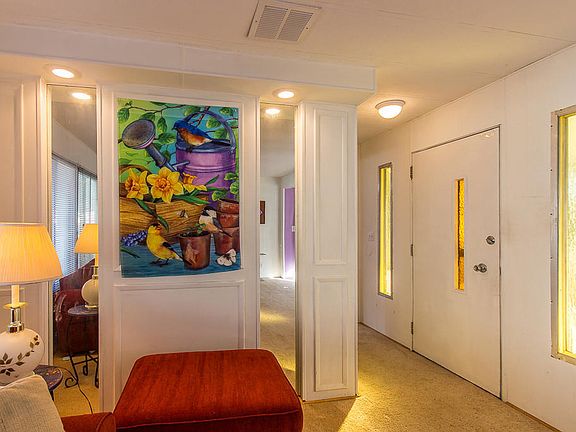 Affordable and Convenient living in this 55+ community of well kept homes. Neat as a pin with fully private sun room and extra deep covered parking. Feels like more sqft. with open floor plan, indoor laundry and 2 full baths. Many nice built ins and backs to open common area with pond, outdoor grilling area or picnic. Large club house w/kitchen, pool and spa.