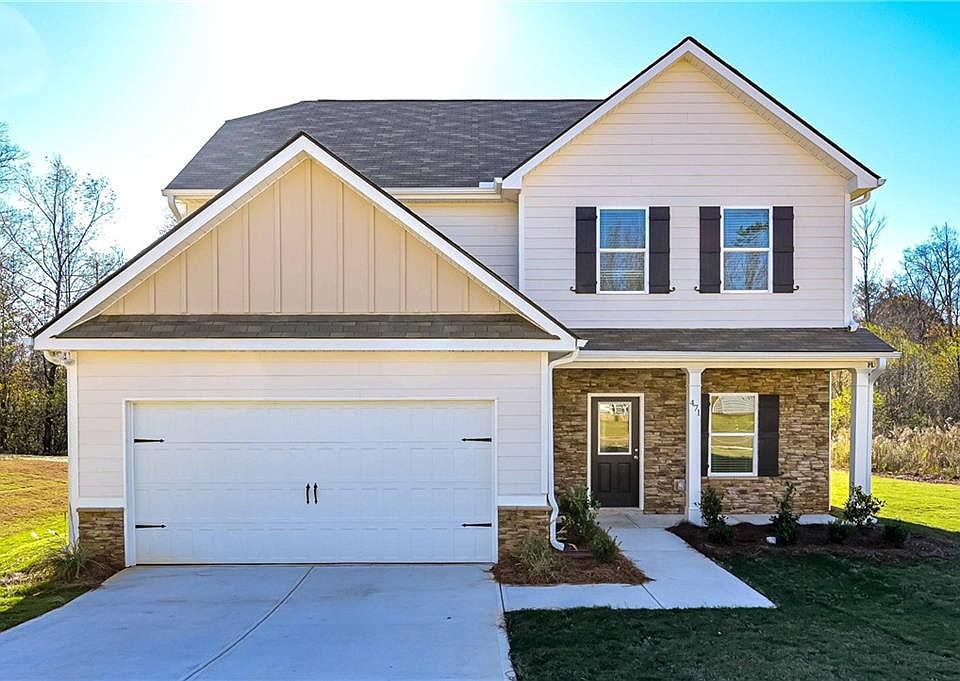 Move in Ready and USDA eligible! This open concept home begins with wood laminate flooring throughout the entire main level, a spacious foyer, powder room, formal dining area, breakfast area, and family room with fireplace. The bedrooms are on the second level with a large primary suite with two walk-in closets, double vanity, garden tub, and separate shower. Three more bedrooms and a full bath complete this home.Builder will contribute $10,000 toward closing cost with preferred lender! Blinds, Screens, Glass Shower Door in Owner's Suite and Garage Door Opener added at no charge to Buyer!