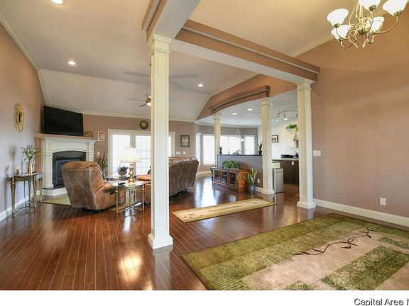 BEAUTIFUL country, peaceful, living on 5 acres, just minutes to Lake Sangchris w 42x54 Morton building w 13 ft door that's perfect for an RV! Gorgeous construction in meticulous condition w MANY updates in the last 12 months! New fresh paint, Kenmore Pro Commercial grade appliances in kitchen, HW flooring throughout, great room, formal DR, nice kitchen w granite counter tops, master suite offering tile walk-in shower w walk-in closet. Finished LL w wet bar, rec room & 2 BR's w full bath. Geothermal HVAC, covered patio & fenced back yard. Over-sized 3.5 car garage, large laundry room!