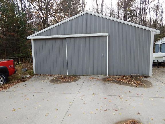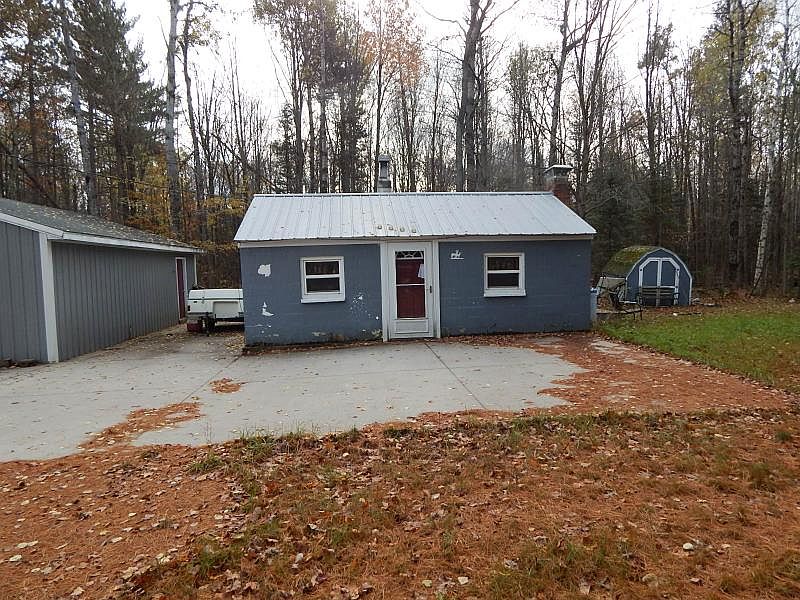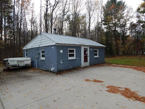 Highly motivated Seller will entertain ANY offer! Seller will consider owner financing. Studio-style cinder block house with metal roof, in need of some TLC, yet has so much potential! Large living/sleeping area with fireplace and space heater. The kitchen/eating area is roomy, and ready for your finishing touches. Includes a spacious 24'x30' cement floor pole barn, with electric,sliding front door, in very good condition, and ready to store all your up-north toys or equipment. Both buildings are almost fully surrounded by a large cement patio/landing. All this is nestled on a nice one-acre lot, and conveniently located on a paved road for easy in and out access. This property, although sold in "as-is" condition, would be a perfect and affordable hunting cabin or up-north getaway. Don't let this one pass you by!