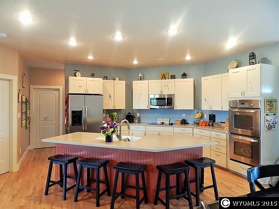 Custom Craftsman home located right off the Golf Course with 4 acres, beautiful views, & lots of charm! This ranch style house has plenty of room to entertain with a huge dining room & kitchen area open to the living room. A large master suite with access on to the composite deck overlooks the backyard. Two more bedrooms & a bath, a large laundry room & walk in pantry finish off the main level. The basement has endless possibilities with tall ceilings & 5 egress windows! Call Macey 307-359-0099 to see.