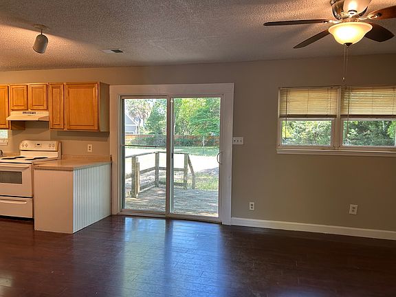 A tranquil country cottage at the end of Fort Johnson Road near the Department of Natural Resources and Sunrise Park. This three bedroom two bathroom country cottage has a large backyard, hardwood floors, a rear deck overlooking a large fenced yard, a washer dryer hook-up, recently installed new ductwork, freshly painted, and off street parking.