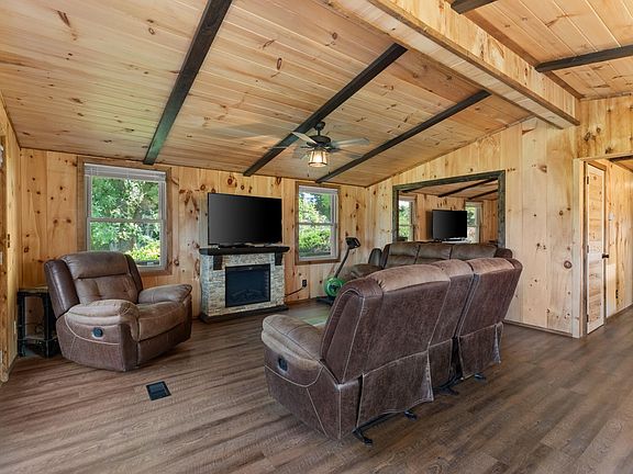 Stunning completely remodeled home right across the street from the golf course! This home has that cabin feel without the exterior maintenance! This home has 2 bedrooms and 2 full bathrooms and an open concept living area on the main floor and a heated/cooled semi-finished basement with an EXTRA room! There is also an oversized covered porch where you can relax and enjoy the views regardless of the weather. Or just roll out of bed and onto your porch from the primary suite and enjoy the view. Two sheds in the backyard- one finished with water and electric and one with for lawn storage. Just minutes from the Cherokee boat ramp gives the best of the mountain and lake life! Any and all information has been taken from the current owner and CRS. Information is deemed reliable but not guaranteed. Buyer and buyers agent to verify all information.
