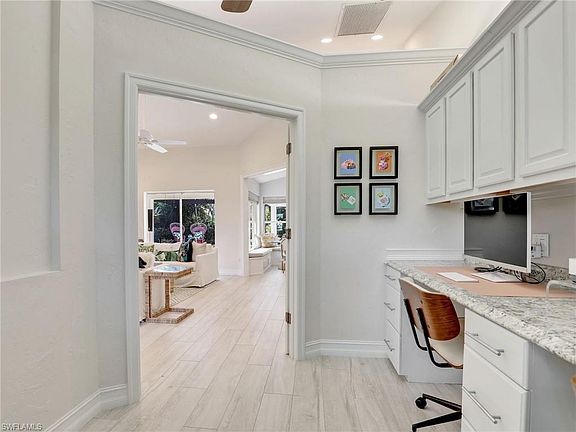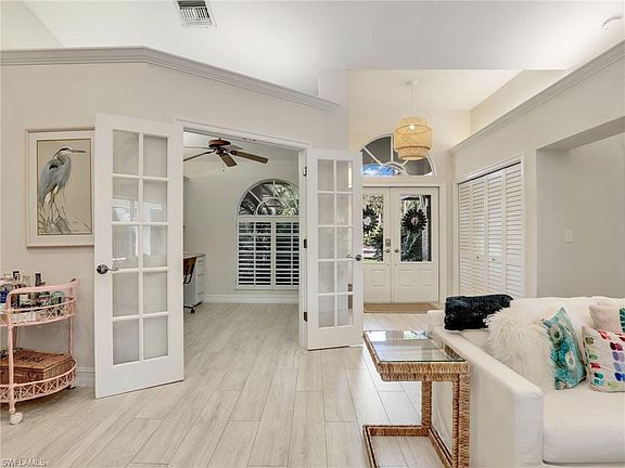 4 BED + DEN/3 FULL BATH/2440 SQ FT/3 CAR GARAGE SINGLE FAMILY POOL HOME IN QUAIL CROSSING AT PALM RIVER ESTATES! This home is stunning with every upgrade imaginable and tranquil & serene tropical oasis on the lanai & pool area. Meticulously maintained with the tile roof replaced in 2021, AC in 2017, and water heater in 2016. NOT IN A FLOOD ZONE!Indoor furnishings are a mix of Mitchell Gold, Huntington, Alison Craig and more. Outdoor furniture is mostly Restoration Hardware. When you enter the foyer, the family room is right in front of you with sliders that open out to the lanai. The vaulted ceilings truly enlarge the space. The den offers french doors, a built-in desk with upper cabinetry for storage, and a plantation shutter. The expansive kitchen has a large island that overlooks the eat-in kitchen dining area which has a built-in bench, and the living area with custom made couch for the space. The kitchen upgrades include quartz countertops, white farmhouse sink in the oversized island, soft close drawers, stainless steel Samsung electric cooktop & wall ovens (full size oven & speed oven/microwave), LG refrigerator, Whirlpool dishwasher, Cavalier hood, pantry with pull out drawers, and under-cabinet & above-cabinet lighting. Modern conveniences include a ring doorbell, smart thermostat & keypad on the front door & garage doors. Additional upgrades include 6" baseboards, tile flooring throughout except carpet in 2 guest bedrooms, and dry bar with beverage center. The laundry room is well equipped with stackable washer & dryer, utility sink, and large counter space & cabinetry for storage. Welcome to paradise - the saltwater pool has a brand new heater (2024) and is situated in your own private oasis. The expansive paver lanai includes a large L shaped covered area, pool area, sun area with loungers, and a panoramic newer screen enclosure (in 2021) showcasing the beautiful & private landscaping. Centrally and conveniently located to restaurants in Piper's Crossing, Green Tree Plaza & more! Immokalee Rd has so much to offer including Seed To Table, easy access to I75, restaurants, grocery stores, gas stations & more! Mercato & Waterside Shops are within 15 minutes away. Less than 5 miles to Delnor Wiggins Pass State Park & Beach and less than 6 miles to Vanderbilt Beach!