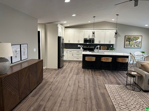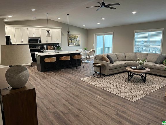 Welcome to this beautifully designed new construction, zero-entry duplex located in the Sheldon Crossing development, where modern elegance meets comfort. The spacious kitchen is a culinary delight with sleek white cabinetry, quartz counters, a pull-out pantry, and a large island with a striking dark base. The open-concept living area features a cozy electric fireplace, vaulted ceilings, and abundant natural light, ideal for both relaxation and entertaining. This home has two bedrooms, including a master suite with an attached bathroom and a generous walk-in closet, as well as an additional full bathroom for guests. The adjacent laundry room, with its stylish dark cabinets, combines functionality with a touch of luxury. The unfinished basement offers endless possibilities for customization, storage, or extra living space. The exterior boasts a sleek and low-maintenance finish with LP SmartSide prefinished siding and charming stone veneer. At the back, a durable composite deck provides a perfect space for outdoor relaxation and entertainment. The finished and insulated two-stall garage enhances the home’s practicality and curb appeal. This duplex offers a blend of contemporary design and functional living spaces, making it a perfect place to call home. Don’t miss the opportunity to experience this stunning property in person! New Construction Details: 2x6 stud walls Zero entry G&E Custom Cabinetry - maple painted cabinets LP SmartSide siding with 50 year warranty Asphalt 30-year shingles Pella vinyl windows Composite deck Gas furnace/AC Electric water heater Luxury vinyl plank flooring throughout Plumbing - Visser Brothers Plumbing & Heating Concrete - Koopmans Concrete Company Electric - Barry's Electric Paint - Painting the Town Paullina