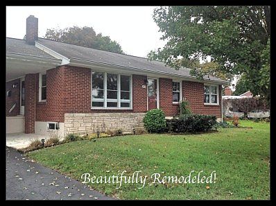 Tastefully remodeled brick rancher features a beautiful modern kitchen with new cabinets, counter, sink, and stainless steel appliances, updated bathroom w/granite vanity top, professionally refinished hardwood floors, large 1st floor family room with brick hearth for possible wood/coal stove. Full basement w/heat for future expansion. Carport plus 2 car detached garage and nice sized yard.