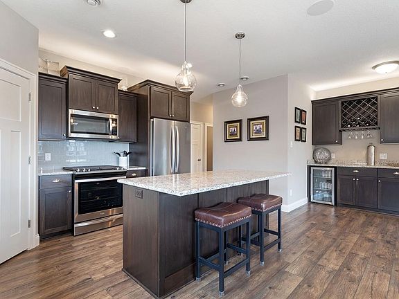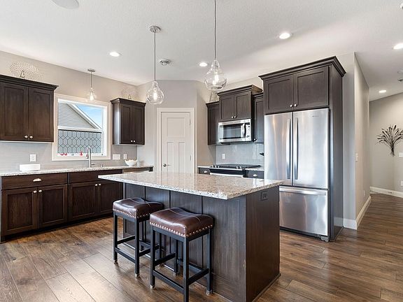 Look no further! This luxury one level town home is loaded with top quality features and is better than new construction! Open concept floorplan has 9' ceilings & an abundance of natural lighting. High end millwork, custom cabinetry featuring soft-close doors & drawers, granite countertops, walk-in pantry, SS whirlpool appliances + a gas stove! Adjacent to the kitchen is a built in bar with a beverage refrigerator. The nicely sized living room features a electric fireplace and picture window that offers scenic pond views. The sun room also overlooks the pond and has a door to the back patio. The primary bedroom is spacious and features a spa like bathroom & a walk-in closet. The oversized, heated garage has water, 2 retractable blade ceiling fans, built-in Sonos speakers, custom pull-down screening and custom interlocking floor tiling that allows for draining. You seriously will want to entertain in this garage. A few of the other upgrades: * Built-in Sonos sound system with volume controls in various rooms. * Extra wide door ways * Lovely, durable LPV flooring throughout * Custom Hunter Douglas blinds *