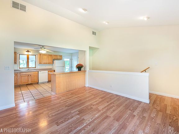 Cute! Cute! Great location close to shopping, schools & the lake PLUS a large wooded backyard with patio! Come inside & you'll love the open floor plan with living/great room with vaulted ceilings & bay window ; kitchen with large breakfast bar, maple cabinets, ceramic tile floor, door to patio, and space for a small table ; lower level has a great sized family room and a large home office or 4th bedroom, and a 2nd full bathroom. New landscaping adds to the terrific curb appeal. All you need to do is move in and enjoy!