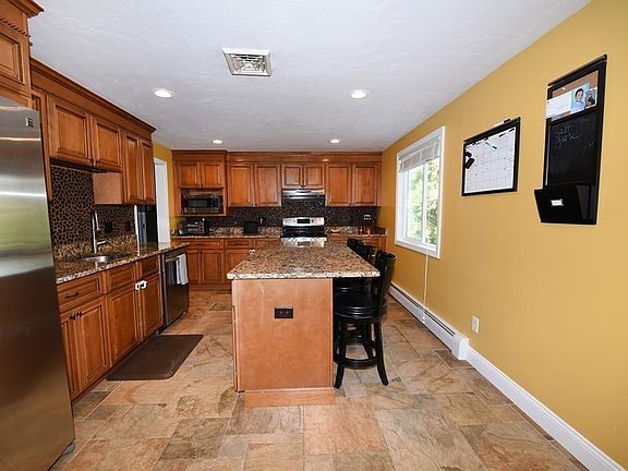 Superior finishes include amazing tile-work that sets this incredible Split Entry apart! Ideal for entertaining, w/open floor plan that extends onto 12x16 composite deck w/built-in gazebo overlooking full-size basketball court & adorable play area, nicely fenced. So much has been renovated - 2013 Kitchen, Baths, Laundry, Master Suite,& 200 amp electrical w/250 amp plug in garage work area; 2015 Plumbing; 2016 Paver Patio; 2017 New Architectural Roof, Hardee Plank siding, composite trim and deck, high efficiency Gas boiler, tankless water heater,& lower level finished. Hardwood is stained red oak, with custom inlay in Master, Tile includes popular plank style flooring in lower level that resembles wood. Recessed lighting in every room. Corner lot with a large grassy area w/ room for a pool, and 700-acre Ames Nowell State Park at the end of the street provide great opportunities for recreation! Other awesome features are dry basement, Fios & Town Sewer. Convenient to Rt.18 & T station!