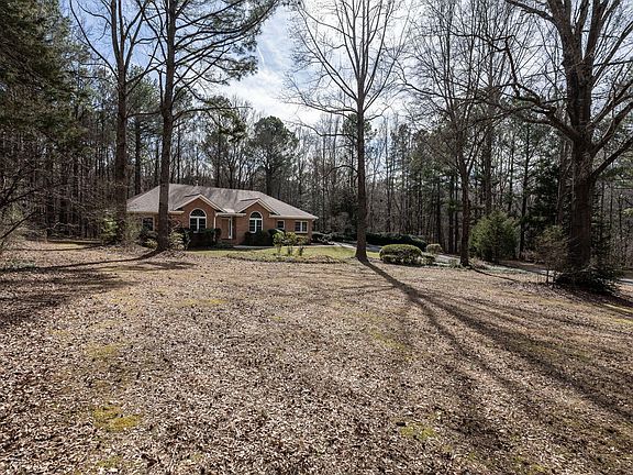 Fabulous private retreat on five acres just four minutes from downtown Pittsboro! Don't miss this three-bedroom, two bath all-brick home that offers high-end upgrades and peaceful privacy. You'll love the open floor plan with custom quality finishes: Field-finished hardwood flooring, crown molding, leaded glass side-lights, recessed lighting, built-in display shelving, plus a spectacular two-story stacked-stone gas-log fireplace. The gourmet kitchen features custom cabinets, a gas range, newer appliances, high-end granite counters with beveled edges, a large island plus a built-in sub-zero refrigerator. The spacious primary suite offers two closets, a large ceramic-tile shower with frameless enclosure and a seat, granite counters and loads of drawer storage in the double vanity. There is a lovely sunroom with pristine views of the property. The over-size two-car garage is fully finished and painted with a coated floor. Enjoy the peaceful backyard on the Trex deck featuring a natural gas line for the grill. So many updates: Painted 2025, Bedroom carpet 2025, HVAC 2020, Trex deck 2020, high-end low-V windows 2023, Roof 2017 with a 20 year warranty. This home includes a UV-light water treatment system, a Generac generator, a paved driveway, and a detached storage shed. Log Barn neighborhood has a deal with Specrum where they provide 1Gbps interest speed and 125+ Channels cable for $95/month. Find your dream of country living just minutes from all the conveniences of booming downtown Pittsboro!