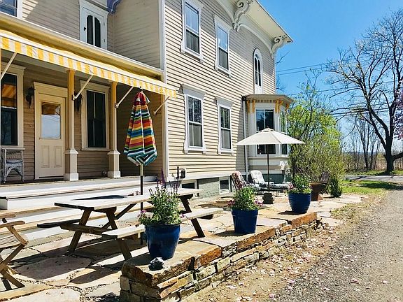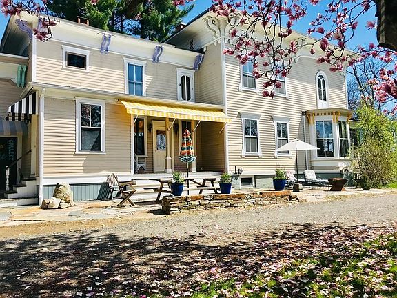 A whimsical, eclectic floor plan is found in this handsome antique home. Nestled on over 3 acres and sporting gracious floral trees and many perennial plantings - this unique home has it all. Hardwood floors are found throughout complimented by beautiful trims, wainscoting and crown moldings in butternut, chestnut and cherry. Some original trompe l'oeil paintings still remain as does the original essence of the home. A new influence has been introduced which is much more light hearted and free of spirit making this the perfect home to live and play. In addition to a flowing traditional floor plan, there is a walk up third floor cupola, studio apartment - perfect for added income, a care taker suite or guests and 3 season studio/workshop. The storage is grand and includes several spaces above the 3 car garage. Amenities are many including a goshen stone patio,screened porch and more. Located in the sweet town of Hatfield, you are minutes to major routes, shopping and schools.