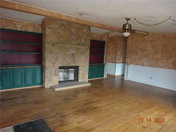 Welcome to a property that offers serene and scenic vistas!! This manufactured home does need a complete rehab; however, it does offer a cement block foundation/crawlspace, natural gas, well and septic! Located on 3.39 acres +- this home offers quite a bit of square footage to work with, a log burning fireplace in the living room is just one of the added features this house has to offer. French doors of the back bedroom lead out to a wooden deck. The Main bedroom offers an on-suite bathroom with a soaking tub. Outside as you drive up to the house, barn and garage with additional shop area you will enjoy abundant covered parking for your cars and toys. The yard is partially fenced and would be great for go carts or practicing your golf swing. So many opportunities to explore with this piece of ground, just bring your imagination and vision. The acreage has been recently cut for an easy perusing of the property and grounds. Just minutes from Grove City Outlets and shops and restaurants