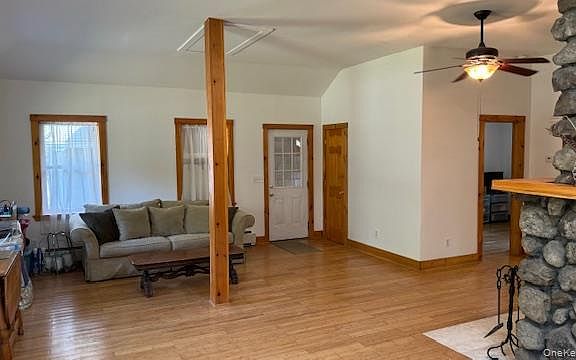 Back on Market! Country Cottage waiting for you! Beautiful home with open floor plan, high ceilings and a gorgeous stone fireplace. Natural hardwood flooring throughout the home adds to the warmth & charm. The spacious kitchen with dining area is open to the living room with a deck off to the rear. There are 2 bedrooms, large closets and a nice bathroom with storage. A 1 car garage is steps from the home offering a workbench and extra storage space. Bluestone pathways around the home also add to the charm. Enjoy your time in the yard that offers a tranquil setting. All of this is just minutes from shopping, schools, highway, train, bus and all the great activities the Hudson Valley has to offer! Call today to view this home! Tractor, snow blower and all the tools for the yard and home are included. Everything stays with the home.