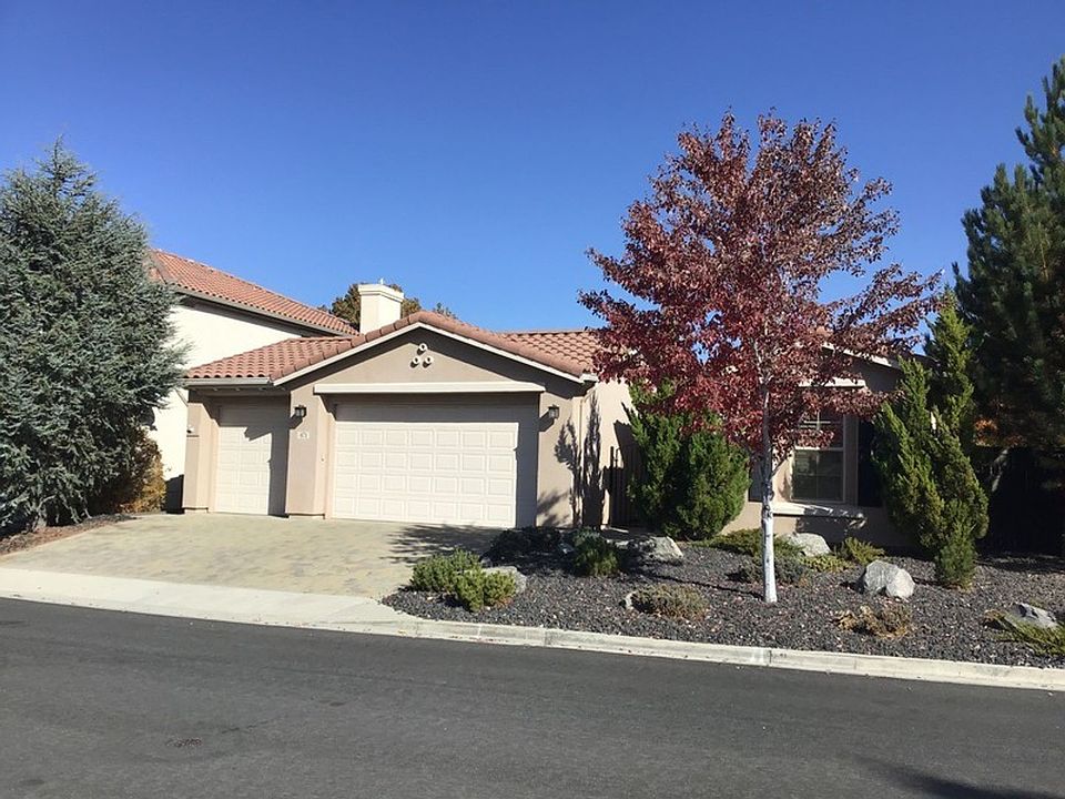 This home features a paver entry courtyard. Separate family and living room. Living room with tile flooring, ceiling fan and gas fireplace. Kitchen including fridge, gas stove, double wall oven, microwave and dishwasher. Granite counter tops with island seating. Primary bedroom with ceiling fan and slider access to back yard. Attached bath has garden tub, stand up shower and dual sinks. Laundry room with sink, lots of cabinets and washer and dryer. Landscaped front yard and back yard with water feature, paver patio and pergola. Three car garage. Tenants responsible for NV Energy, water and trash. One small dog under 30lbs on approval with additional deposit. No co-signers considered. Renters liability insurance required for all financially responsible tenants This is 12 month lease. All properties require an application process. Each person over the age of 18 must complete an application. The application fee is $35 per person. Applications include running credit (650 or better), employment/income verification, and rental references. NV. BS.0143495, NV. PM.0164783