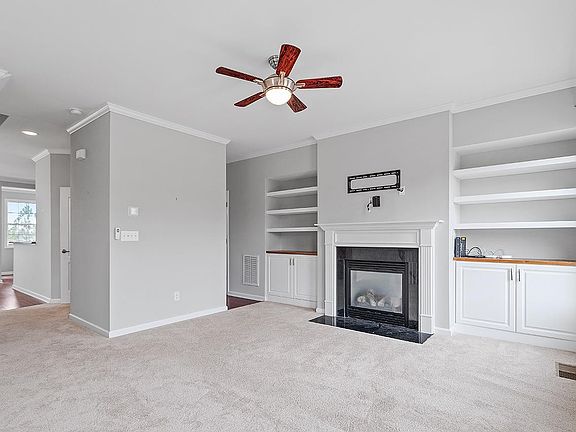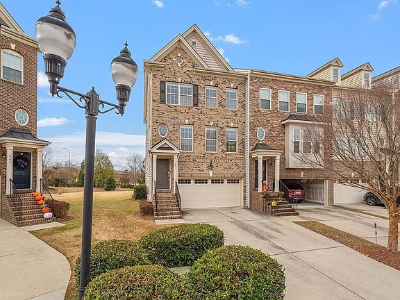 This luxury end-unit townhouse in Stonewater, just seconds from where the Apple campus is being built, has tons of natural light and is ready for you! From the entryway, walk up hardwood stairs into the lovely open living room complete with crown molding, a gas fireplace, and built in shelving. The kitchen boasts gas range, granite countertops, and stainless steel appliances, as well as lots of eating and gathering space! The third floor hosts a large primary bedroom with walk in closet. The ensuite bath includes dual sinks as well as a separate shower and tub. You'll also find two secondary bedrooms, another full bath, and laundry room on this floor. Large 1st floor bonus could function as play space, TV / exercise room, or 1st floor bedroom w/ half bath & separate entrance. Newer HVAC & appliances. 2 car garage with additional side storage. It is the perfect NW Cary location - close to Parkside Town Commons shops & restaurants, Publix, Whole Foods, La Farm, the American Tobacco Trail and UNC Wellness Center. Neighborhood offers pool, playground, & walking trails. Back on the market due to no fault of the seller.