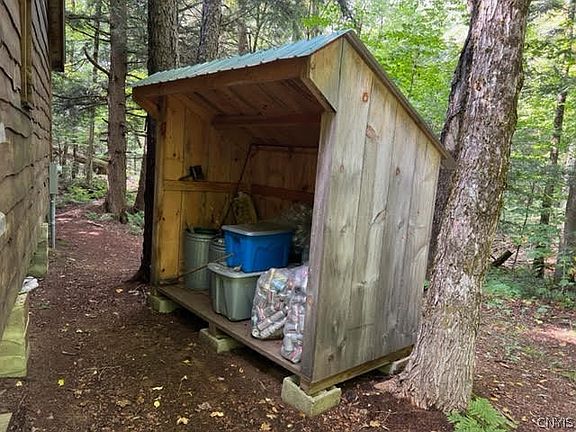 Wow! Just a little more finishing work and this cabin could be amazing. All the hard work is done. Set on 4+ acres in the Adirondacks, you can access state land near by, phenomenal streams for fishing and kayaking, hike to remote lakes, or put your boat in on some of the most beautiful large lakes in NYS. All the insulating, rough plumbing, and wiring is already done. Just button it up with sheet rock or pine paneling. Electricity is on from the road, but there is no well yet. You could carry in water or use rain water to flush the toilet into the septic. (Or use the outhouse!). A Great Room with a floor to ceiling stone wall behind the wood stove is amazing. One large bedroom on the first floor is nice and a second bedroom is a huge loft. There is even a regular electric stove, an air conditioner, and internet is at the road. A little bit of work, a great value!