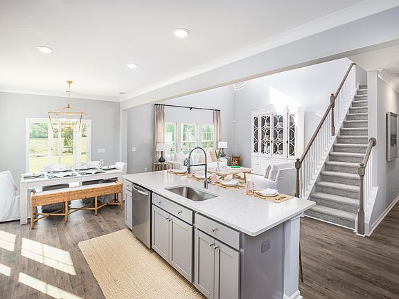 The Virginian floor plan is a gorgeous 2 story with the master bedroom downstairs with deluxe bath featuring garden tub and separate shower. The family room is a show stopper with a two-story ceiling and lots of natural light. A study, formal dining room and kitchen with breakfast nook finish out the the first floor. Upstairs you'll find 3 secondary bedrooms that share a full bath (with double bowl sinks) and a guest suite, which is situated over the garage complete with dual closets and private bathroom. What more could you ask for??!!Finishes include: Gleaming Quartz countertops with subway tile back splash, upgraded white cabinetry, beautiful and durable laminate floors throughout the first floor (including the master bedroom), ceramic tile in the bathrooms AND a HUGE screen porch off the family room which backs up to protected woods offering maximum privacy. Residents of Waterside enjoy access to the 500 acre lake system that is exclusive to a handful of communities. You can launch a kayak, canoe, paddleboard or just enjoy fishing from the neighborhood boat ramp. Completion/move-in is expected to be November 2022. **please note that the virtual tour is a very similar depiction of the actual home for sale EXCEPT, 471 Richfield will have white cabinetry and will include a gas fireplace in the family room.