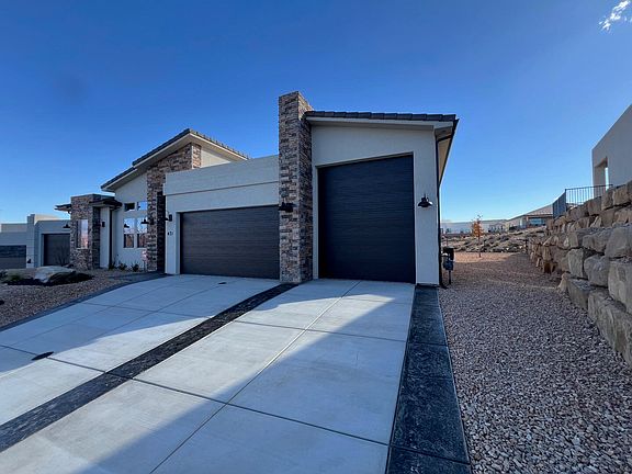 COMPLETED NEW CONSTRUCTION! Unobstructed views of the bluffs from the great room! Backs up to open space! Single level living! 36 ft RV garage! This home has it all. Spacious great room and Owner's Suite. Upgrades throughout: light knotty alder cabinets, beautiful quartz countertops, and upscale GE CAFE appliances in the kitchen. Quartz counters in the bathrooms, 2.5 baths, and a 35 ft back patio to enjoy the view . Located just minutes from downtown, the freeway, Snow Canyon, and hiking trails.