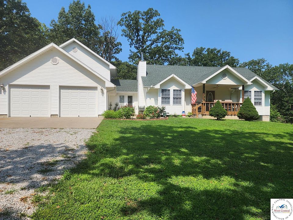 Check out this custom built home nestled on 4.7 M/L partially treed acreage. This spacious 3 bdrm, 2.5 bath home consists of many custom features. Beautiful kitchen with lots of hickory cabinets, S/S appliances, eat-up bar & adj. dining area. 3 large bdrm areas and a finished basement area that would make a nice living area for mother-in-law or company overflow. Lg storage area, safe room & stairway from basement to garage. Detached 8x24 storage building for toys and lawn equipment. Situated close to many boat accesses on Truman Lake and Corp ground for hunting. Come take a look.