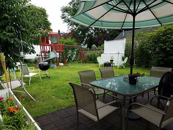 Charming 4 BR house on a great tree-lined street, surrounded by houses of higher price. Walking distance to both elementary and middle school! Sun-filled living room with dining area has gleaming hardwood floor and plantation shutters. New powder room in the 1st floor guest room. Updated eat-in kitchen leading to a very private backyard for your entertainment. Skylights and good size closets in the master bedroom on the 2nd floor, with new Berber carpet. This house has generous sized bedroom, central air and new windows. A finished family/rec room, a separate laundry and extra large storage space in the basement. Great Move-in condition. Architectural plan also available for conversion to a colonial.
