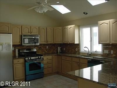 This 14 year young extremely large 8 room Split-Level Home is located on one of the finest tree lined streets in Wood-Ridge. Featuring on the first floor: A very large kitchen with blonde wood cabinets, granite, breakfast bar, all stainless steel appliances, two skylights and tile floors, a dining room also with tile flooring, a bright and sunny living room with red oak hardwood floors and a wood burning fireplace. The second level has a carpeted master bedroom with a full bath and a large walk-in-closet. Two additional bedrooms one of which is carpeted and the other has hardwood floors, laundry room and a full bath. The lower level has a family room with tile floors, a office also with tile floors, entry to the one car attached garage and entry to the backyard. The basement is finished with tile flooring and two extr5emely large closets. Three zone gas hot water baseboard heating, one zone central A/C and central vac. This 14 year young home was renovated in 2010.