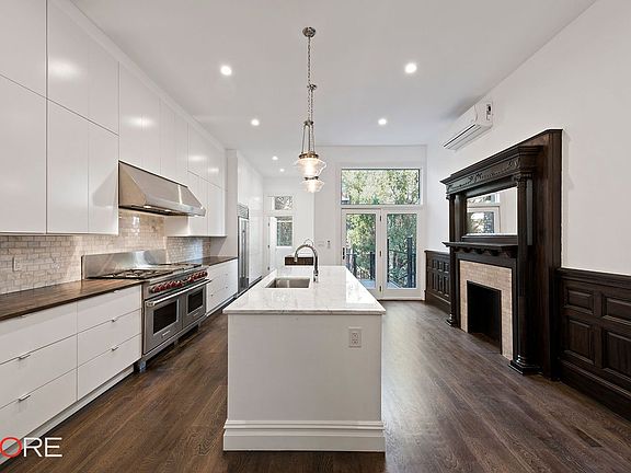 Presenting 471 on West 144th Street, this beautiful renaissance revival brownstone is now available for the first time ever in its current iteration. Newly renovated with four stories, a cellar, roof deck, and garden, this townhouse represents the ultimate blend of modern appointment and classic style. As you enter the parlor floor you will instantly enjoy the soaring ceilings and vastness of the open living room with sunny bay windows looking over one of the most beautiful trees on the block. Next, transition into a fully equipped chef's kitchen with an industrial strength, double-width Wolf stove, jumbo Sub-Zero fridge, two sinks, an island suitable for dining and countless cabinets and drawers for storage. Next head onto the back deck, perched above and leading down to your very own garden. The next floor houses the first bay windowed bedroom as well as a master suite, which includes an enormous walk-in windowed closet, a luxurious five-piece bathroom, and a charming decorative fireplace. The upper floor includes another bay windowed bedroom, a laundry area, a sky-lit study as well as a rear facing bedroom with a private roof deck. The garden apartment, with a separate entrance and an optional interior entrance, includes a spacious living room (convertible sixth bedroom), open kitchen, 1.5 baths, an oversized bedroom with a built-in laundry area, and access to the rear garden. The partially windowed cellar provides ample space for storage or can be used for recreational purposes. Every floor of this house, including the cellar, is equipped with high efficiency split system cooling and heating. Historic Hamilton Heights offers one of the greatest places to live in NYC. This house sits within three blocks of five different train lines. Enjoy close proximity to a multitude of cultural and recreational interests such as the heralded Riverbank State Park and the Hudson River Greenway, St. Nicholas Park, Jackie Robinson Park, City College Campus, and an abundance of shopping and dining opportunities.