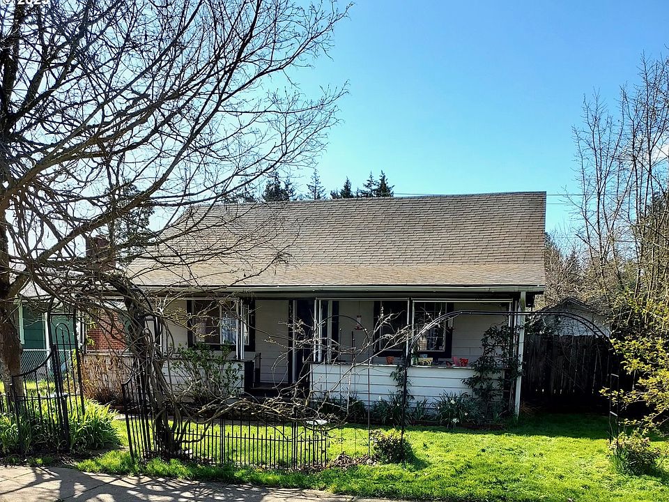 Charming vintage home with delightful curb appeal and a beautiful covered front porch, perfect for enjoying the warm spring weather. The main level boasts stylish laminate flooring and a spacious bedroom, while the dining area is off the kitchen which features elegant tile countertops and a sleek glass top range. Upstairs, you'll discover a generously sized bedroom with the potential for a third bedroom or office space. The large, fenced backyard is a haven for relaxation, complete with an above ground pool and a lovely patio area for soaking up the sun. A sizable garden shed provides ample storage space. Enjoy peace of mind knowing the newer roof and ductless heat system with air conditioning offer modern comfort and convenience. Don't wait - come see this enchanting property and fall in love with its irresistible charm.