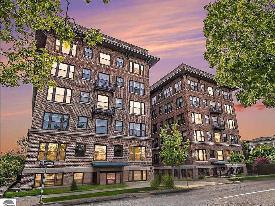 Step into Sumptuous on South Street, where nearly a century of history meets timeless sophistication. Built in 1923, the Marlborough Building is one of downtown Kalamazoo’s architectural gems, blending historic craftsmanship with modern luxury. This 2-bedroom, 2-bath residence is a rare opportunity to live inside a story—beautifully restored and thoughtfully updated. From the moment you enter through the grand historic double doors, the building transports you to another era. The inlaid terrazzo floors, original brass mailboxes, and Art Deco elevator are striking reminders of the building’s storied past, setting the tone for the elegance that continues throughout the home. Inside, warm engineered hardwood floors flow through an airy open living space. The chef-inspired kitchen is a statement in style and function, featuring cherry cabinetry, granite countertops, bar seating, a wine rack, stainless steel appliances, and a designer butler’s pantry by Abode. The living room’s gas fireplace, framed by custom tile, adds a perfect touch of cozy sophistication. In the primary suite, you’ll find dual customized closets, a peaceful seating area, and a luxurious en-suite bath with laundry. Hunter Douglas window treatments and carefully selected finishes elevate every corner. Outside, residents enjoy a rooftop patio, landscaped lawn, and all the perks of being just steps from Bronson Park, Kalamazoo Institute of Arts, beloved breweries, and downtown’s vibrant energy. Sumptuous on South Street isn’t just a condo — it’s a front-row seat to Kalamazoo’s history, wrapped in modern comfort and unforgettable style.