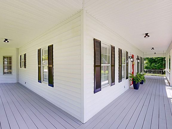 Picturesque 1.18 acre lot in Woodlawn Estates, around the corner from White Oak Creek boat ramp in Eufaula. Wraparound Porch with new Porch Swing & Light Fixtures. Beautiful Wood Door with Sidelights. Spacious living room with Gorgeous Hardwood Floors that flow throughout the Main Level, floor outlets, vented gas fireplace accented with shiplap and a granite hearth, painted ceiling beams, extra recessed lighting, wainscotting and tons of extra trim-work! Half bath for guests on main floor. Remodeled Kitchen with attractive Granite, Tiled Backsplash, Recessed Lights, Stainless KitchenAid Appliances, farm sink, custom cabinetry and pantry storage with convenient drawers. Primary Bedroom with French doors (with built-in blinds) leading to a screened porch overlooking the backyard, large closet with built-in shelving, AMAZING ensuite bath with Dual Sinks, Built-in Vanity with electrical outlets in the drawers, accessible shower with rain and wall showerheads, tiled walls and stone flooring, crystal chandelier in the middle of the room! Landing area upstairs between two large spare rooms sharing a full bath. In Ground Fiberglass Pool, with a convenience ledge surrounding the whole pool! Detached 3-Bay Workshop with utility sink, wired for electric vehicle! New Trane HVAC (Downstairs). Deep well for the pool, workshop and sprinkler/irrigation system. City Water for the House. Scuppernong & Muscadine Vines, Kiwi, Pear, Blueberry and Fig! Roof replaced in the last 5 Years