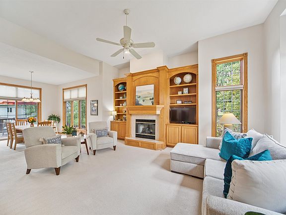 Tucked away in a quiet enclave minutes from shopping, restaurants, interstate access, this 3 bed, 3 bath ranch has over 2000 sq ft. The freshly painted exterior, will welcome you into this end unit with high ceilings and an open floorplan perfect for entertaining. The kitchen has been updated with new granite countertops, new SS appliances, and plenty of cabinets and even has a coffee or bar area. The oversized windows offer tons of natural light, plus there is a slider to the private deck from the dining area which overlooks the green space. A guest bedroom, bath, primary suite, laundry finish out the first floor. The walkout lower level has an oversized family room, third bedroom, office space, and plenty of storage. All new appliances will stay with the home, plus the seller has added a Level 2 (40 amp) charging station, quick possession possible. Call your realtor today for a showing.