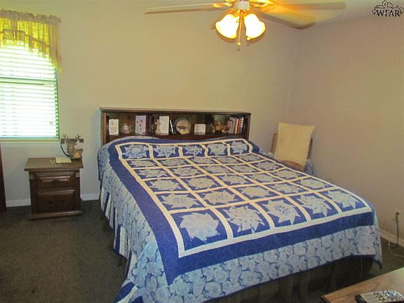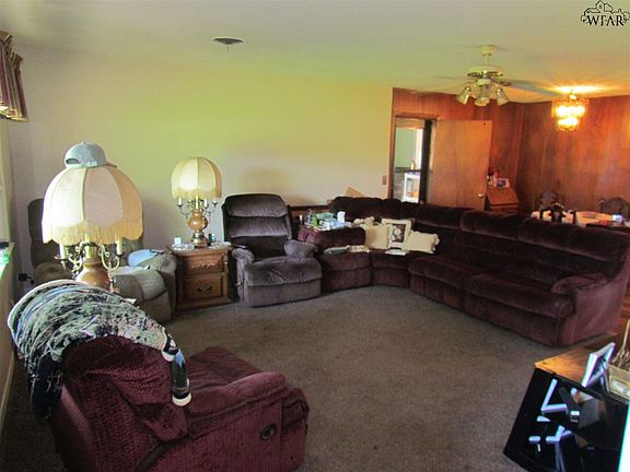Room for horses and show calves! Well kept 3 bedroom, 2 bath, 1 car garage brick home on 8.5 acres. Metal roof, updated bathrooms, newer double pane windows, new water well and water heater. Mature shade trees, covered back patio and fenced back yard. Several out buildings with improved grass pasture.