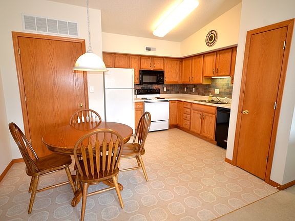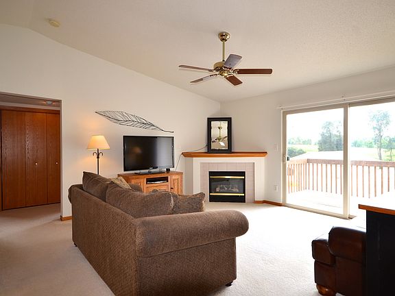 Very clean, well maintained, one owner condo highlighted by vaulted ceilings! The unit features an open floor plan, large living room with a gas fireplace, eat-in kitchen with a pantry, and a deck. A laundry closet is conveniently located between two nice sized bedrooms. Improvements include a newer backsplash, water heater, dishwasher, ceiling fans, high quality window treatments, and some new flooring and paint. This is a top floor condo so you never have to worry about noise from neighbors above you. Kitchen appliances and a detached garage are included. The association takes care of your snow removal, lawn care, and garbage. Located just off of Greenhill Road in the center of Cedar Falls and Waterloo.