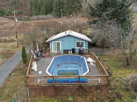 Over twenty acres in Valleyford! Approximately two acres are across the road and includes a stretch to Hangman Creek. Several location options to build your dream home and the potential to convert the one bedroom house to an ADU. It has been cutely fixed up and has a spacious living area and former porch that has been converted to living space for a small bedroom or office. The pellet stove keeps the home cozy and warm. Three quarter bath has nice updates and a stackable washer/dryer. Beautiful acreage has it all: treed hillside, flat ground, fruit trees, garden area, and the creek! Large deck with a functional above-ground pool for fun summer entertaining. Garden shed and an additional small storage area for pellets.