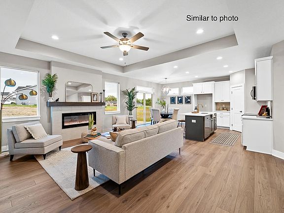 Welcome to Destiny Homes' Livingston ranch floor plan with 3 bedrooms, 2 bathrooms and 3 car attached garage. This split bedroom plan has bedrooms 1 & 2 at the front of the home with a full bath in between. The entry hall has stairs that lead to the basement and opens up to the great room/dining/kitchen main floor with electric fireplace and 9 ft ceilings. Kitchen features include painted cabinets, granite countertops, tile backsplash, center island and engineered hardwood flooring that extends into the dining area with sliders to the patio. The primary suite located off the great room has a double vanity, walk-in closet with a pass through to laundry/mud room area. Ask about $2000 in closing costs if buyer uses preferred lender. Estimated completion early March 2025.