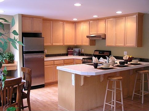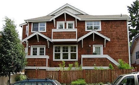 Beautifully maintained townhome in popular Wallingford/Green Lake area. Move-in ready! 2 bedroom plus den. Features open kitchen w/ SS appls, maple cabinetry, gas stove, & oversized eating bar. Dining room w/ French doors that open to deck. Maple hardwoods. Master and 2nd bedroom EACH feature vltd ceilings, full bath, & access to upper deck. Designer colors throughout. Den (sm 3rd bedroom?) boasts full bath & lrg window which looks out to pro. landscaped yard/patio. 1+ garage. CLOSE to Green lake, dining, & shops.