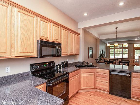 Walkout Ranch, backing to trees for private deck. Main floor has great room with fireplace, eat-in kitchen and eating bar, 2 bedrooms & 2 full baths up, plus first floor laundry room with sink. Walkout basement has a second family room, 1 bedroom and a full bath. Convenient location within blocks of a grocery, gym, bank, drug store, the largest mall in Iowa and the freeway.