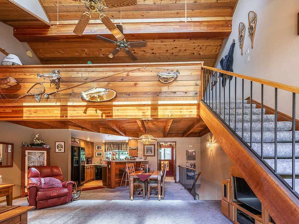 This Snowflower unit is one of the best floorplans in Mammoth with plenty of room for family and friends. It is located in the Mammoth Meadow area close to Mammoth Creek, and the town trail system and easy access to the shuttle stop to take to the ski area. The two bedrooms downstairs each have ensuite bathrooms with a third bathroom on the main living floor for your guests and people sleeping in the loft area. The unit has been well cared for over the last 27 years by the same owners with no rentals. The kitchen and eat-in bar have beautiful granite countertops and black finishes for the appliances. River rock surrounds the wood-burning fireplace in the living area with an open concept to the dining and kitchen. The Snowflower complex is highly sought out for its location, amenities, and beautiful location.