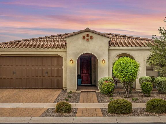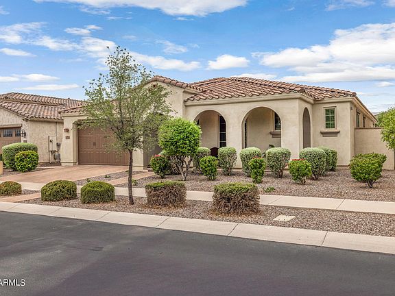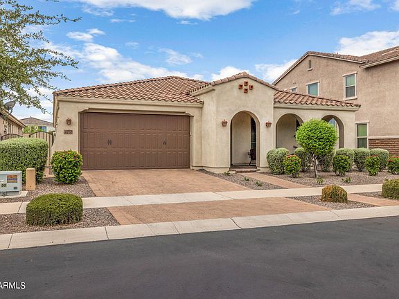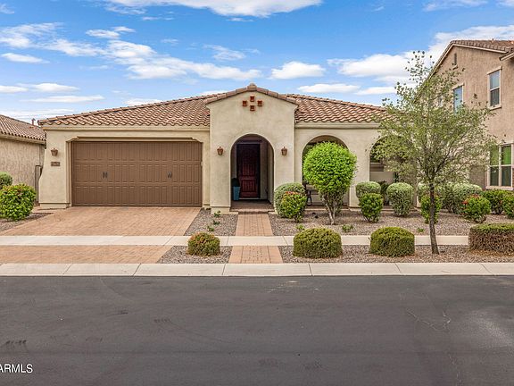 Welcome to Eastmark! Here you can explore the multitude of amazing amenities that include parks, a heated resort-style pool, clubhouse, skate-park, splash pads, multiple sports facilities as well as social events! This thoughtfully designed floor plan is one of Woodside's most popular models. The Great Room creates an ideal space for entertaining and shows off a stunning multi 3 panel slider that opens up to the outdoor space, perfect for enjoying that highly sought after Arizona lifestyle! The gourmet kitchen has plenty of counter and cabinet space, pull-out shelves, upgraded pendant lights, granite countertops, beautiful white shaker cabinets, a gas cooktop, double ovens plus a trash/recycle pull-out cabinet. The spacious master bedroom and ensuite provide a relaxing retreat at the end of the day where you can kick back and unwind in your soaking tub. The master closet is huge and is affectionately referred to as the dressing room. From there you can move right into another highlight of this finely designed home which is the Super Laundry Room! This treat of a space is like no other and has endless possibilities. It's perfect for kids, pets, crafts, and/or hobbies! Additional features include a den, 4' garage extension, walk-in closets in secondary bedrooms, woven roman shades, soft water loop, designated outlet for holiday lights, low maintenance landscaping with lighting and plenty of room to add a pool, if desired. Premium lot offering privacy plus the greenbelt is directly across the street. It's an ideal location to hang out on your front porch and take in the views, watch your kids play or have morning coffee with a neighbor. Conveniently located to nearby shopping, restaurants, fine dining, and freeway access. It's all here!
