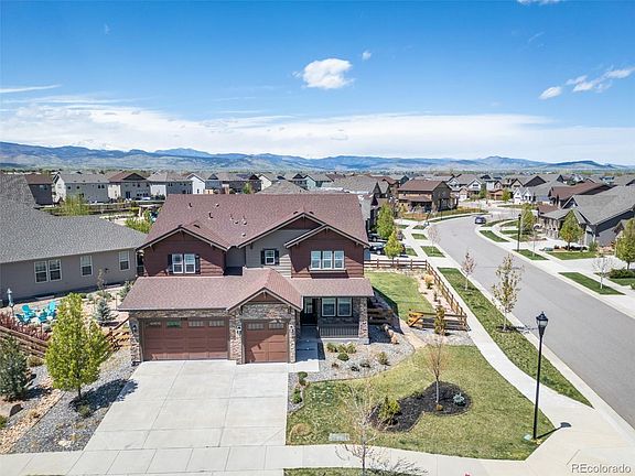 This beautifully appointed, warm and inviting 2 story home is located on a large corner lot in the highly sought-after neighborhood of Somerset Meadows. One of the larger KB models in the neighborhood with so many added upgrades, this home is roomy and spacious enough for all buyer's needs. The formal living and dining room have an elegant feel with a beautiful open curved staircase, gas fireplace in the family room with modern stone and mantel. Dark wood luxury vinyl flooring on the main level and brand new carpet on upper and lower levels, new paint throughout the home. Stunning light and bright gourmet kitchen with white cabinets, quartz counters, glass tile backsplash, stainless appliances, huge island and walk-in pantry, plus bar/buffet area w/ glass cabinets. Main floor study, spacious 3 car garage w/ painted floor, upstairs laundry with included washer and dryer and large loft w/ storage closet. 3 spacious bedrooms, one with a private bath and walk-in closet. Primary bedroom has a coffered ceiling, large walk-in closet, 5 piece master bath with jetted tub, new white vanity and granite counters. Full finished basement with storage room, open rec/media room, bedroom and full bath. Abundance of storage, radon mitigation system installed. Covered trex deck to enjoy sunsets and outdoor dining, gas line for grill. Walk to multiple parks and enjoy all that the neighborhood has to offer. Top-rated schools close by and only minutes to shopping, and restaurants and just 10 mins from Boulder!