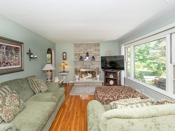 Spacious 3 Bedroom 2 Full Bath Bedford Stone Ranch on 1.3 Acres. The Living Room has Hardwood Floors with a Stone Fireplace. The Kitchen has Newer Stainless Steel Appliances and Lots of Cabinetry and Pantry for storage. Adjacent is the Dining Room with Travertine Porcelain Tile Floor. The 1st Floor Laundry is just off the kitchen with side entry into the home. From the Dining Room you can enter the Sun-room with full sliders with screens that overlook the large back yard. Down the hall from the living room you will find 3 Nice Size Bedrooms with Hardwood Floors and a Full Bath with Tile Floors and Tile halfway up the walls. In the basement you will find a large Family Room with Newly Installed Faux Wood Laminate Floors. You'll also find two office/multi-use rooms with closets, a unfinished storage area, Kitchenette with Laundry Hook-ups and a Full Bath with Tile Floors. There is also an additional cellar at the back of the kitchenette for extra storage. Outside you'll find a large front and back yard, 2.5 Car Garage with new Garage Door, 2 Carports, 2 Storage Buildings attached to Garage, front deck and covered front porch entry, side covered porch and entry, patio in back yard with a Brick Fire Grill and a Two Entry Circular Driveway. This home also has 2 inch Faux Blinds throughout and New Furnace in 2018. Call for Your Showing Today!