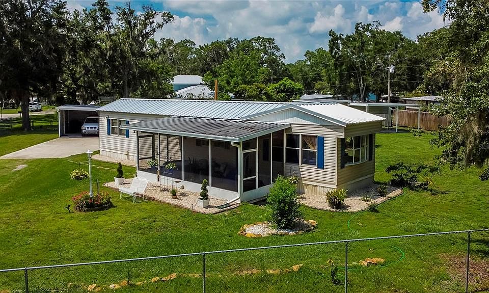 GET A NEW ROOF OF SUPERIOR QUALITY, NEWLY UPGRADED ELECTRIC SERVICE, NEW WELL-WATER FILTRATION, NEWLY PUMPED SEPTIC SYSTEM, NEW LAYOUT WITH 3 BEDROOMS, NEWLY INSULATED & AIR-CONDITIONED SHED AMONG 7 OUTBUILDINGS, & EVEN A NEW ADDRESS at this smartly renovated property near the county line between Polk & Hillsborough! You can see the value clearly. On a fully fenced corner of nearly half an acre, the current owners have made improvements to style & substance inside & out! Start with the exterior, where the mobile home previously expanded to 900 SF now rests securely under a customized, wood-framed, 26-gauge metal roof installed just a few months ago with polyiso insulation & a 5-year craftsmanship warranty. Similarly new is the electric pole & panel upgraded to 200-amp service for handling the recently replaced AC, outdoor lights & security cameras, plus power to outbuildings that include the climate-controlled shed as well as the largest storage structure with laundry hookup. There are 4 locking sheds & 3 carports total, providing cover for 5 vehicles including an RV. A paved driveway at the largest carport is accessible from a remote-controlled double gate in front, with another double gate at a side corner allowing a straight line to remaining ports with concrete parking pads. The 300-SF screened porch in front faces northeast to enjoy sunrise coffee while staying shady in the afternoon heat before sunset. Around back, in the landscaped yard with above-ground irrigation system, you'll find Adirondack chairs & a power outlet in a leafy spot amid palms, hibiscus, bottlebrush, fig & mango trees. Moving inside the home, there's a spacious & bay-windowed living room at one end, a central dining room & kitchen with stainless-steel appliances, plus an upgraded bathroom flanked by the master bedroom & a second bedroom created with the help of pocketing doors. The third bedroom space is set up in the 300-SF rear addition, lockable with its own entry/exit for flexible use or even separate rent. The entire interior welcomes you with natural wood, new paint, colorful (removable) wall murals, & furnishings you're encouraged to consider buying, too! (The current owners purchased with plans to stay for years, but their lives are calling them overseas now. They did complete an important task behind the scenes for you, correcting decades of official contradiction about this property address by having it legally "moved" from Pinewood Village Circle East to the brand-new 4710 Village Drive.) Other advantages to this special property include no water or sewer bills because of its well & septic, monthly electric bills averaging only $140, & helpful neighbors with long histories in this community. No HOA restrictions in this rural area, of course, so bring your RV, boats, other big toys, pets, or even your chickens while still enjoying the convenience of being 5 minutes from a Publix shopping center, 15 minutes to downtown Lakeland, & less than an hour from Disney or Gulf beaches. Arrange your visit today!