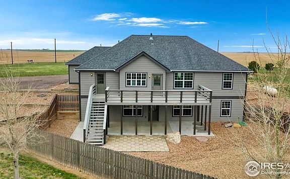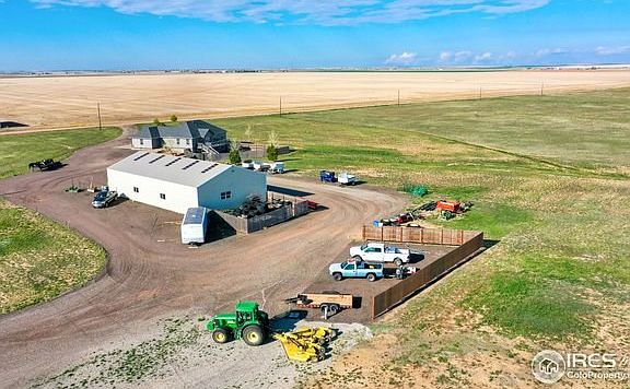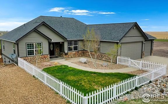 Looking for serenity, acreage & mountain views? Search no more. This lovely ranch style home is situated on 35 acres with beautiful mountain views & offers so much more. Outside you'll find 2 large RV pads with full hook ups, a 3360 sq ft commercial grade outbuilding and an attached 3 car garage. Built in 2006, this home has been freshly remodeled with granite counters in the kitchen, beautiful back splash, fresh paint, new carpet and new laminate flooring throughout, as well as updates in the bathrooms. This home also offers stainless appliances including a double oven, a tankless water heater, a finished walk out basement w/large family/rec room, a wet bar, a bedroom and a bathroom. The shop is insulated, and heated and has an office, loft, bathroom, drainage, and 12 foot doors, separate propane tank and electrical panel and meter. Laundry hook ups on the main floor and in the basement, plenty of storage with shelving. Only 35 minutes to DIA. Office listed as a bedroom, no closet.