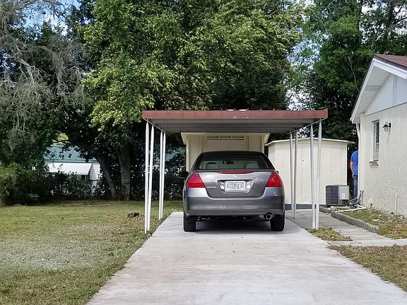 Very nice home on extra large lot. Freshly painted and very clean, 3rd bedroom is an enclosed Florida room. Tile floors, carpet in 2 bedrooms, 1 car garage, 2 driveways and carport, 2 sheds and back patio area. Washer and dryer hook ups. Quiet country feel location but close to shopping, dining and entertainment. Water is included..Tenant responsible for electric, cable, trash removal and yard maintenance.