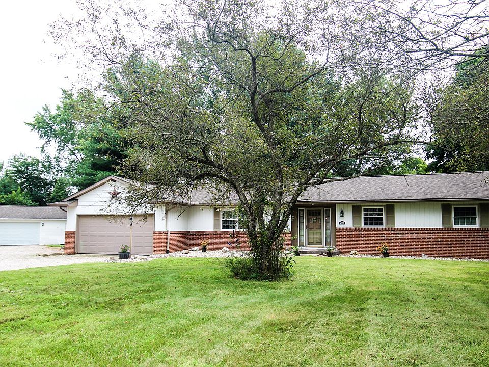 Nice sized ranch on 1.5 acres (two parcels) with a two car attached garage and a two plus car detached garage with concrete floor, tons of storage space in addition to cars, and a lift-just what you have been waiting for! Beautiful yard with nice patio and fenced area for pets. Inside you will find living room plus family room with wood burning fireplace, kitchen with lots of cabinet space and a nice sized eating area. Master suite with outdoor access, double closets plus two guest rooms and full bath in hallway. Home also has water softener and whole home filter system. Set your showing today. Natural gas is available at road. High speed internet available thru Spectrum.