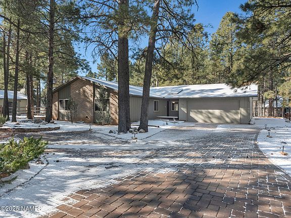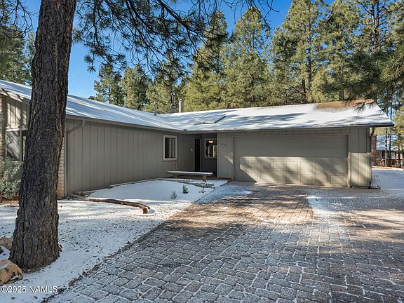 Welcome to your serene oasis in Flagstaff's desirable Country Club area! This charming single-level home at 4711 E Quail Valley Way offers 4 spacious bedrooms and 2 full baths. Nestled on a quiet cul-de-sac just one lot from the golf course, it provides privacy with easy access to the greens. Natural light fills the inviting living spaces, while the kitchen offers classic charm and potential. The master suite is a peaceful retreat, with three additional bedrooms for flexibility. A wraparound paver pathway extends from the driveway to the back porch, perfect for outdoor relaxation. Xeriscaped landscaping ensures low-maintenance beauty year-round. Don't miss this well-maintained gem in the heart of Flagstaff!