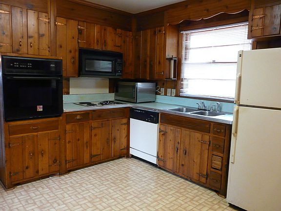 Ready for updates!Great one level brick ranch with fenced backyard.Original hardwood flooring in living room, hallway & 2 bedrooms.Original ceramic tile in full bath.Kitchen is open to dining room with original knotty pine paneling.Den offers utility room w/laundry hookups & exits to backyard & side driveway.Large parking &/or patio at back.