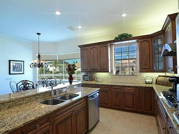 2005 custom built one of a kind home in The Inlets at the end of a cul de sac. Enter the foyer through leaded glass doors of 2626SF + 214SF screen/glass FL room that can be opened or closed at your discretion. A large 93''dock w electric & water on a fresh water canal. The home has been upgraded to include a finished attic w pull down stairs, solid wood doors, a video room/den including TV,blue ray DVD,4-5 speakers, tray ceilings & crown molding. The kitchen has custom wood cabinets include recycle bins, pull out shelves & pot drawers & has granite countertops, upgraded GE Monogram gas stovetop & wall ovens/microwave, plus a direct hood &^ vent to the outside. The extended bay of cabinets off the kitchen is accessorized w a wonderful desk & lg pantry/closet that adds to the storage capacity A larger than normal area in the kitchen area overlooks the lanai, pool, spa & freshwater canal. The adjoining Great room has a gas fireplace along with the surround & easy operational switch. The master suite has double granite vanities, walk-in shower & garden tub. For privacy the split both guest bedrooms have private full baths. The 1/2 bath w pedestal sink also serves as a pool bath. The garage is oversized w workbench & shelves. The screened lanai 70''x25'' features a saltwater pool, heated raised spa, gas outlet for grilling & outdoor shower. The Inlets remain a premier boating community near I-75, restaurants, shopping, medical, & the beach. Enjoy lifestyle of boating, kayaking, tennis & many social clubs.