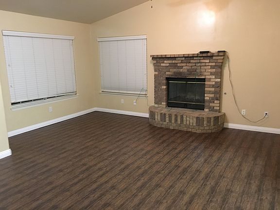Cute as a button 3 bed 2 bath home available in North West Bakersfield! Open living space with vaulted ceilings and a beautiful brick fireplace are perfect for nights in or while entertaining guests. Wood look tile floors run throughout the home for easy clean up and maintenance. Enjoy your stainless steel appliances in the kitchen, along with the bar area or your dining space for eating. Enjoy some extra privacy with no neighbors behind the home, and a brick rear wall. Plenty of space for running around in the back yard, and any landscaping projects you can think of!
