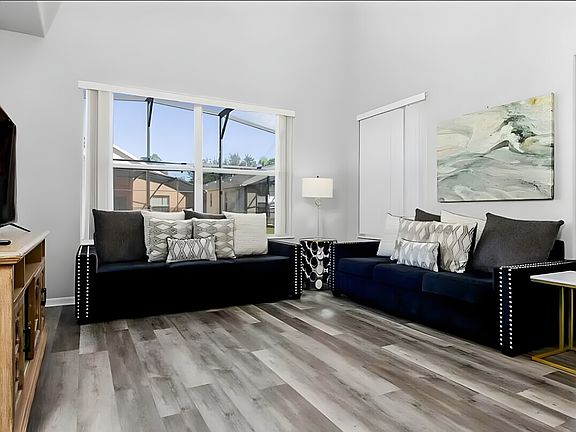 This stunning 5-bedroom, 4-bath pool home is located in one of Kissimmee's most desirable gated communities, just minutes from Disney. Whether you're searching for a full-time residence or the perfect vacation getaway, this home delivers space, comfort, and style in equal measure. As soon as you step inside, you're welcomed by an airy, light-filled layout with soaring vaulted ceilings and an open floorplan that feels both elegant and inviting. The updated kitchen is thoughtfully designed with stainless steel appliances, plenty of counter space and storage, a cozy breakfast area, and a large bar that flows seamlessly into the main living areas perfect for gathering with family and friends. The owner's suite is conveniently located on the first floor and offers a peaceful escape, complete with a walk-in closet, double vanity, soaking tub, and separate shower. Upstairs, you'll find additional spacious bedrooms and bathrooms ideal for guests or a growing family. Step outside to your private screened-in lanai with a heated pool and spa, the perfect setting to soak up the Florida sunshine or unwind after a day at the parks. Crystal Cove Resort offers fantastic amenities like a community pool, clubhouse, fitness center, and playground all just a short drive from world-famous attractions, shopping, and dining. If you've been dreaming of a move-in ready home that offers the best of Florida living, this is it. Let's schedule your tour!